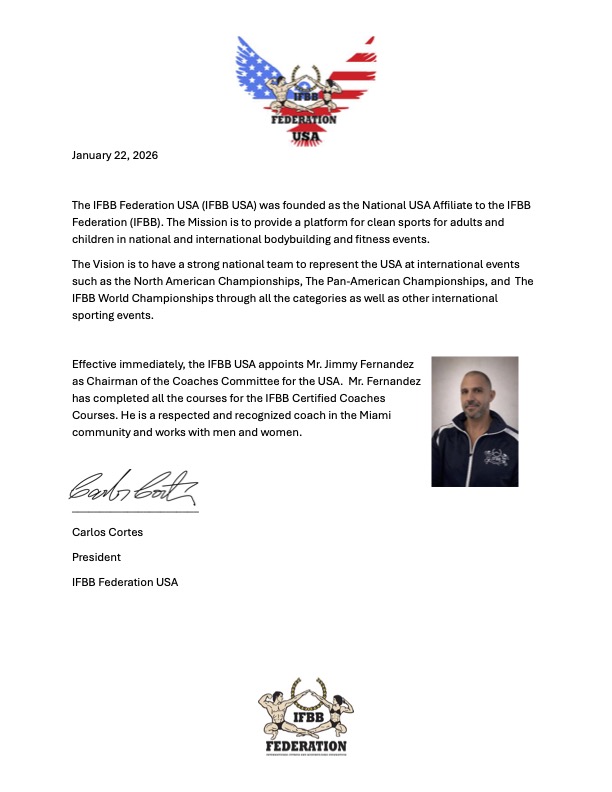 • IFBB USA Chairman – Coaches Committee